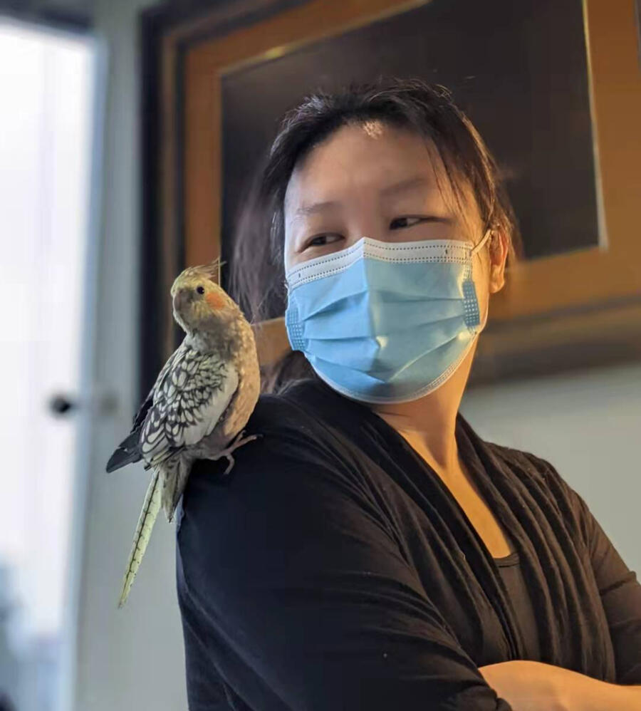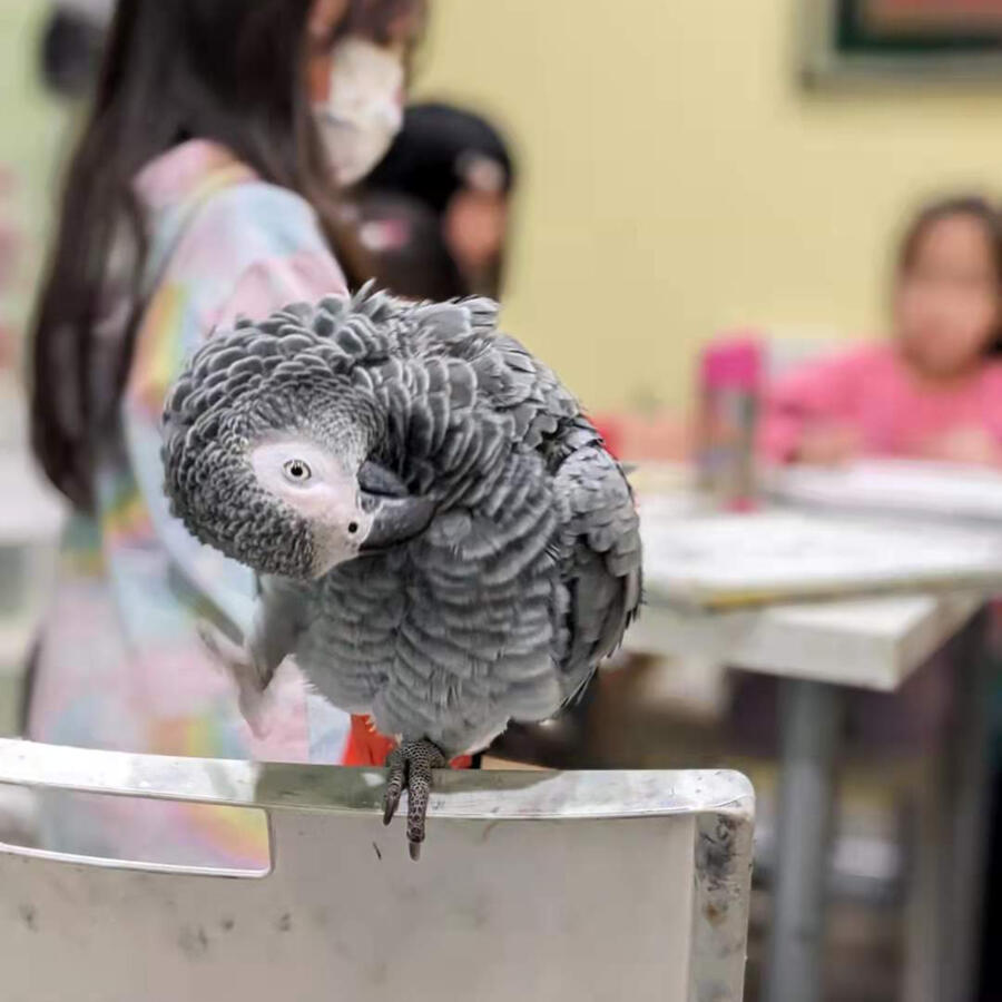 Nini is one of Elsie's many pet birds which often come to studio, she's a gentle African Grey Parrot who loves to watch over students and the students love her too!