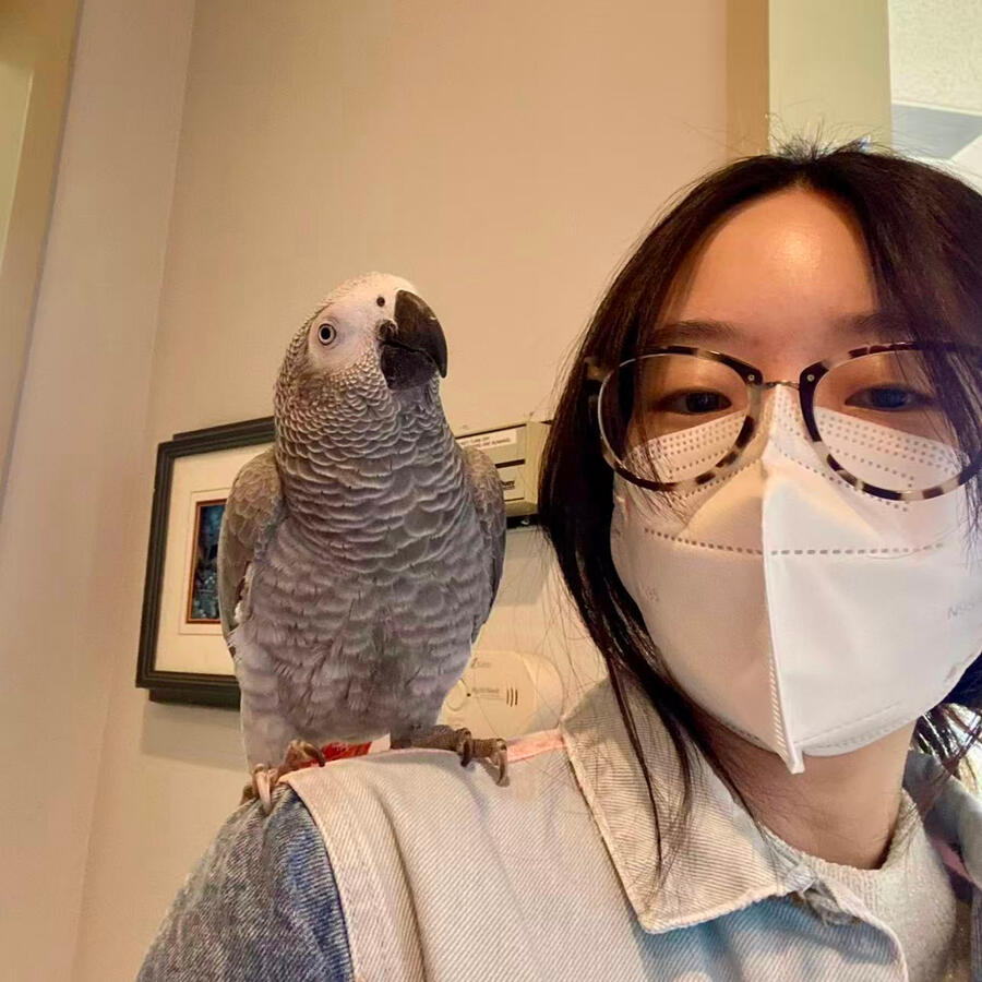 Nini is one of Elsie's many pet birds which often come to studio, she's a gentle African Grey Parrot who loves to watch over students and the students love her too!